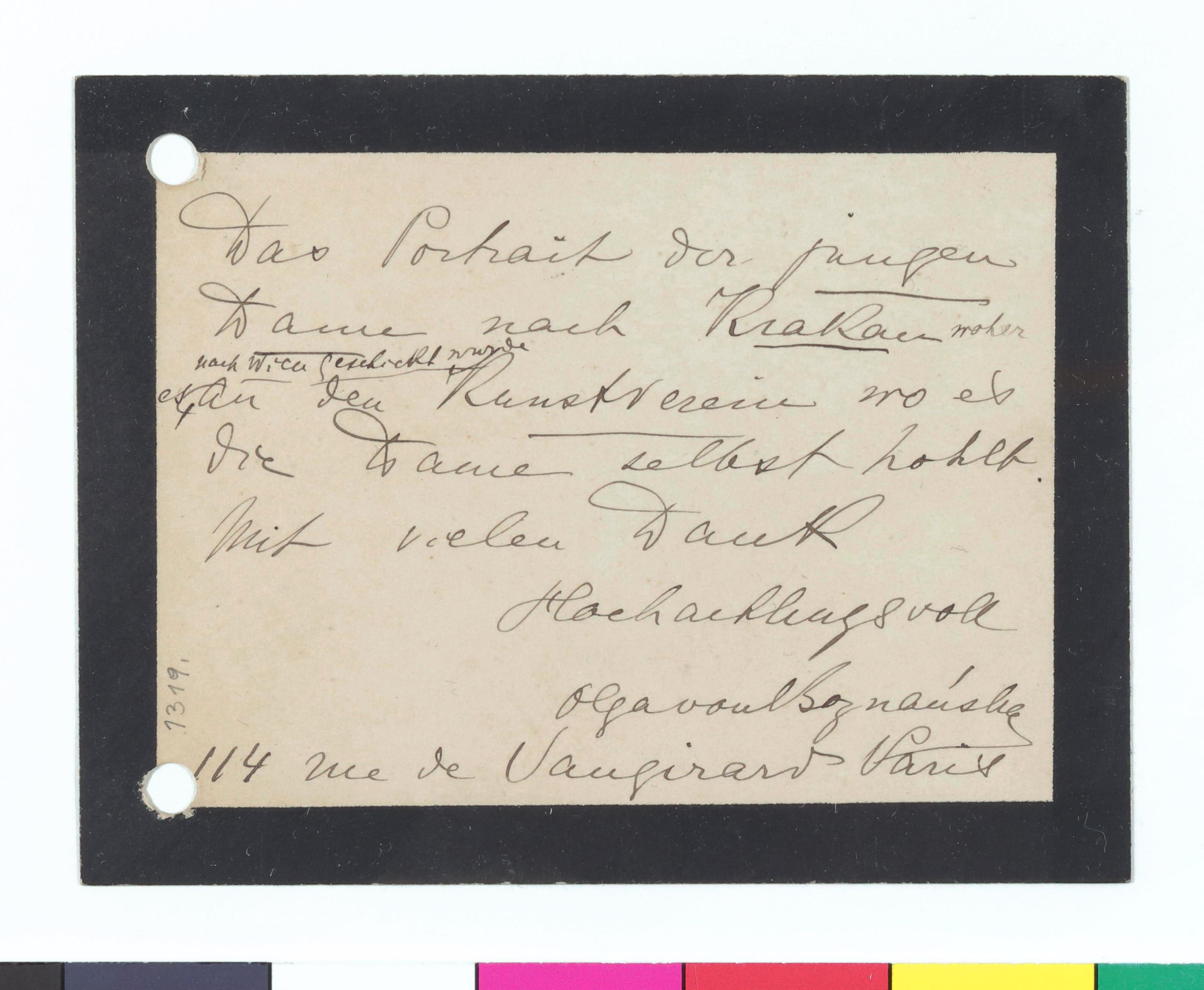 Briefkarte von Olga von Boznánska an