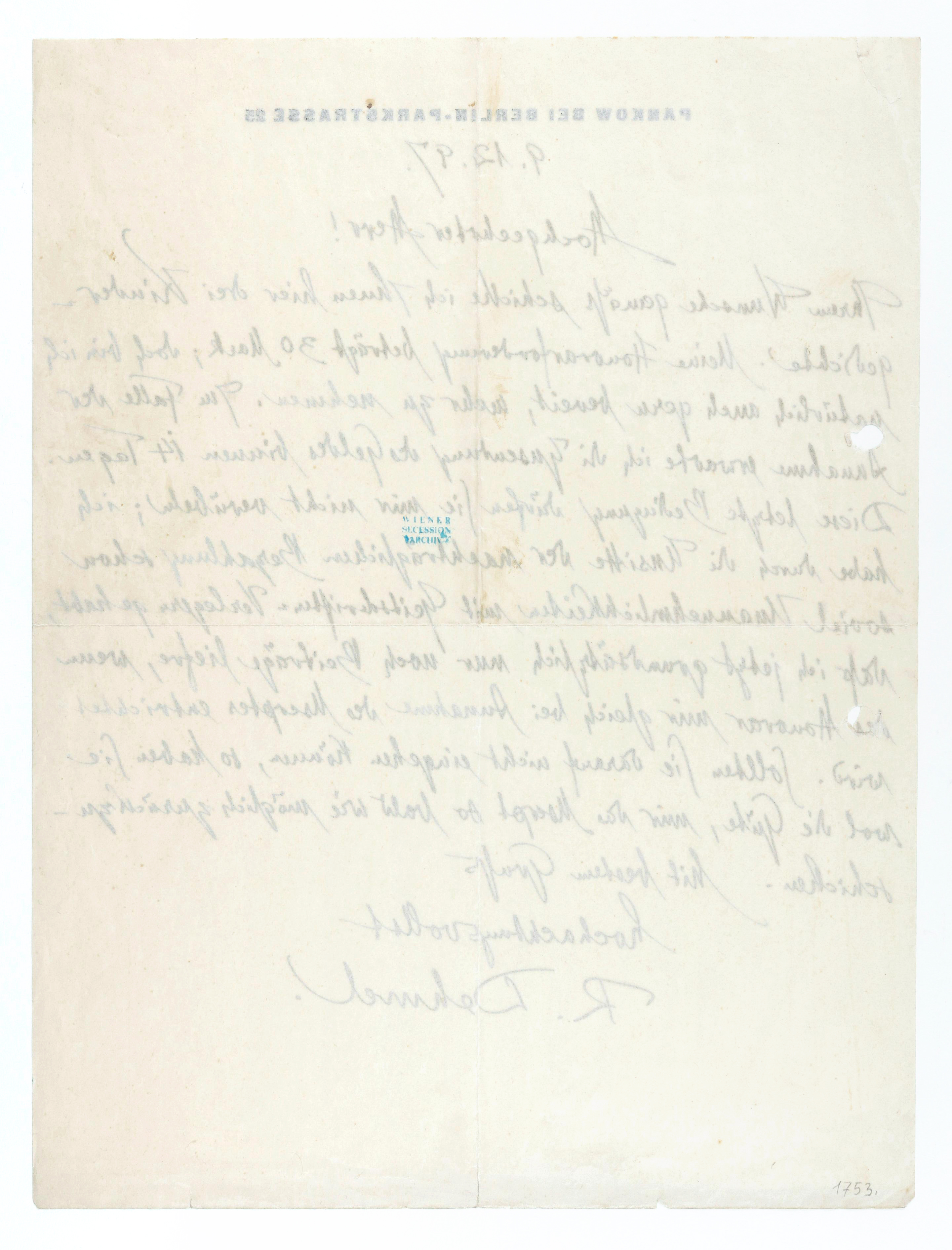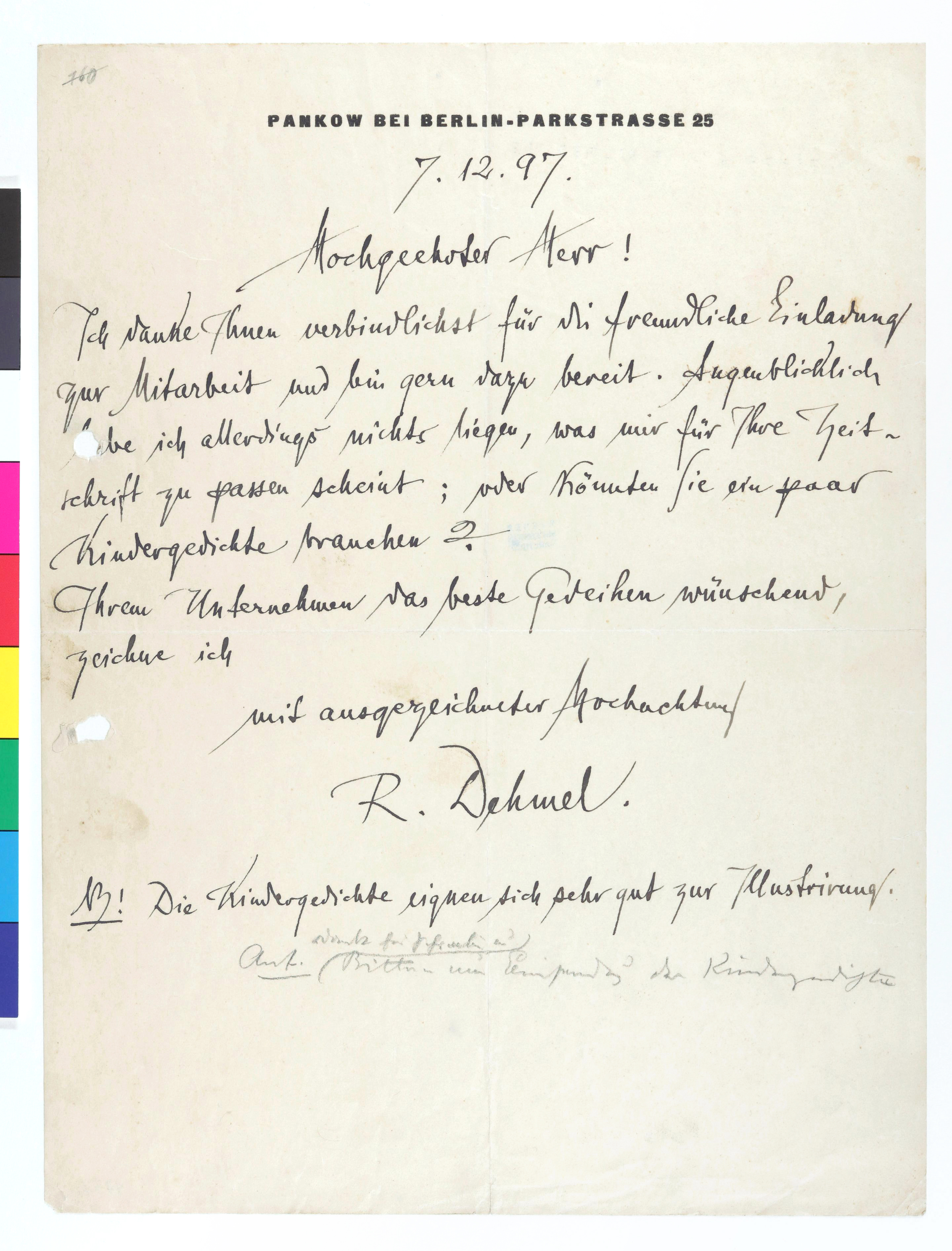 Brief von Richard Dehmel an die Secession