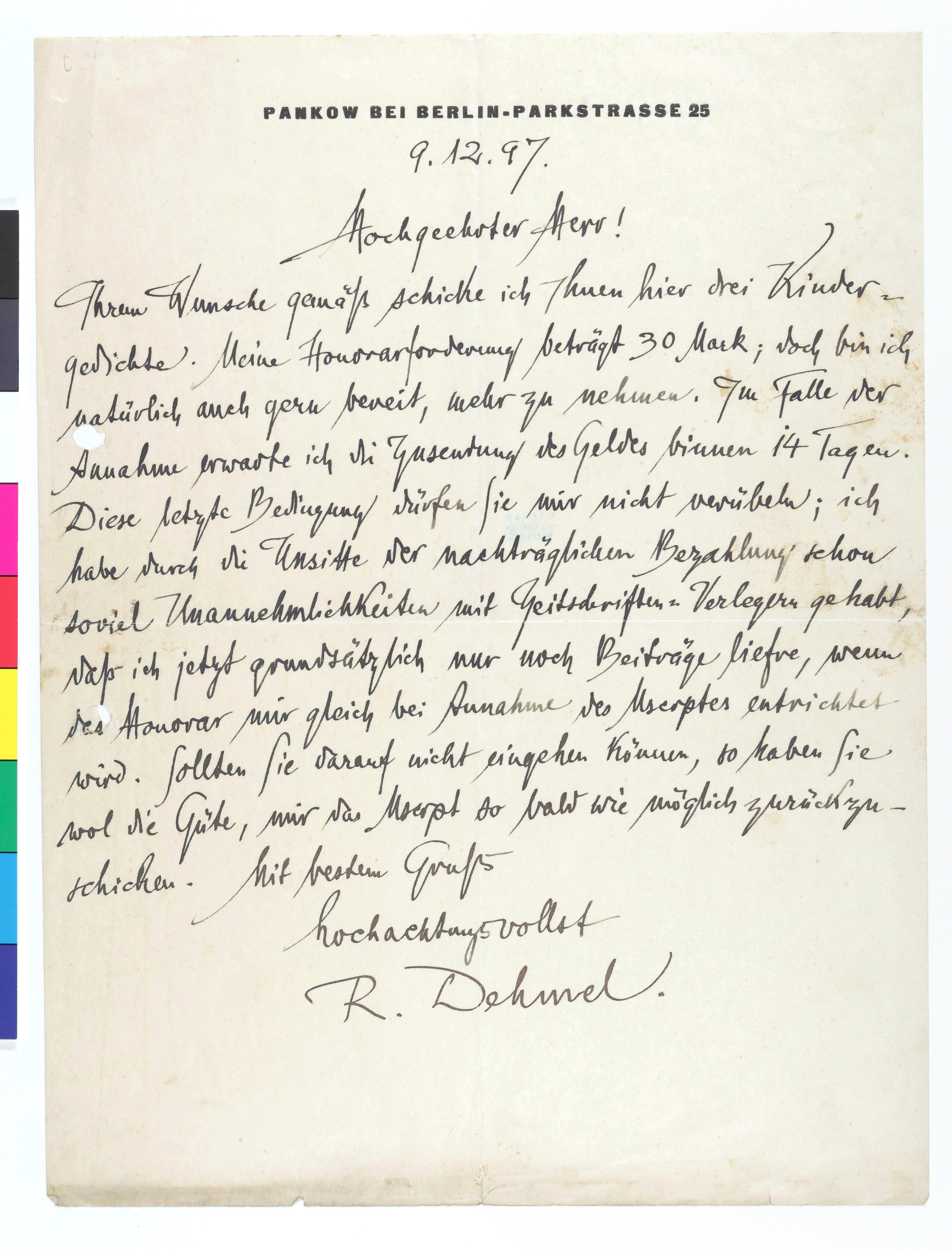 gedichte. Meine Honorarforderung beträgt 30 Mark; doch bin ich