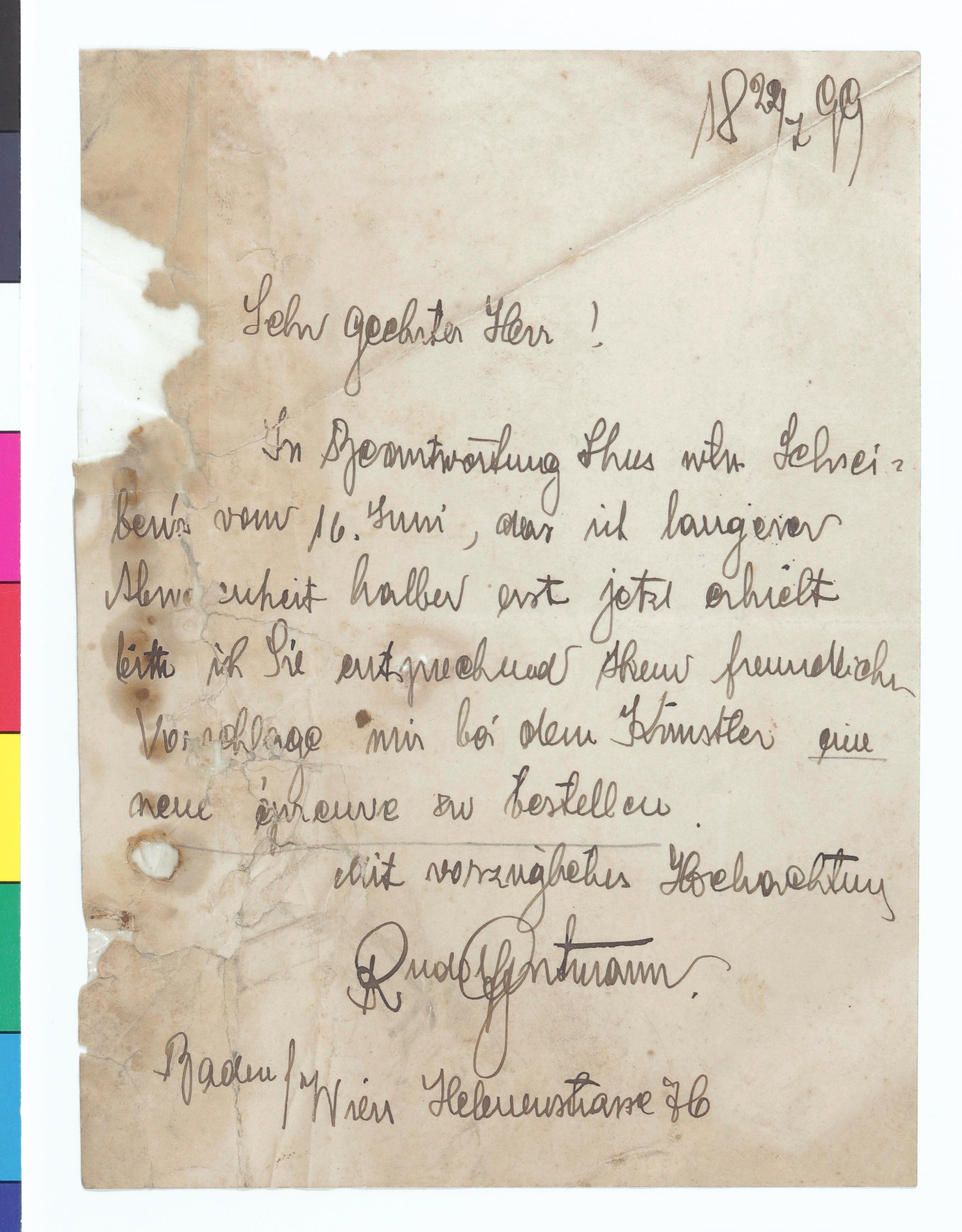 Brief von Rudolf Ritter von Gutmann an die Secession