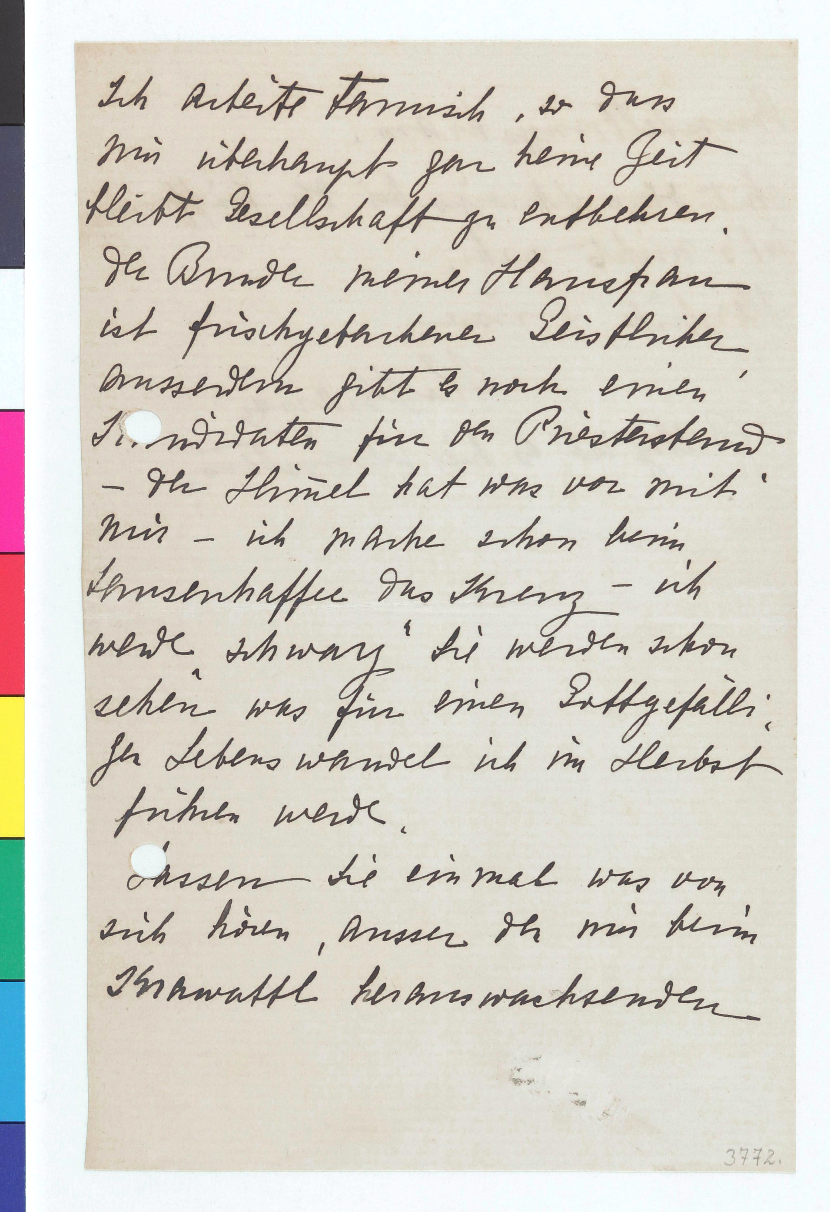 Der/die Schreiber*in schreibt Privates aus ihrem Alltag: Sie arbeite panisch, bekundet bezüglich kirchlicher, ihrem Haushalt nahestehenden Personen: