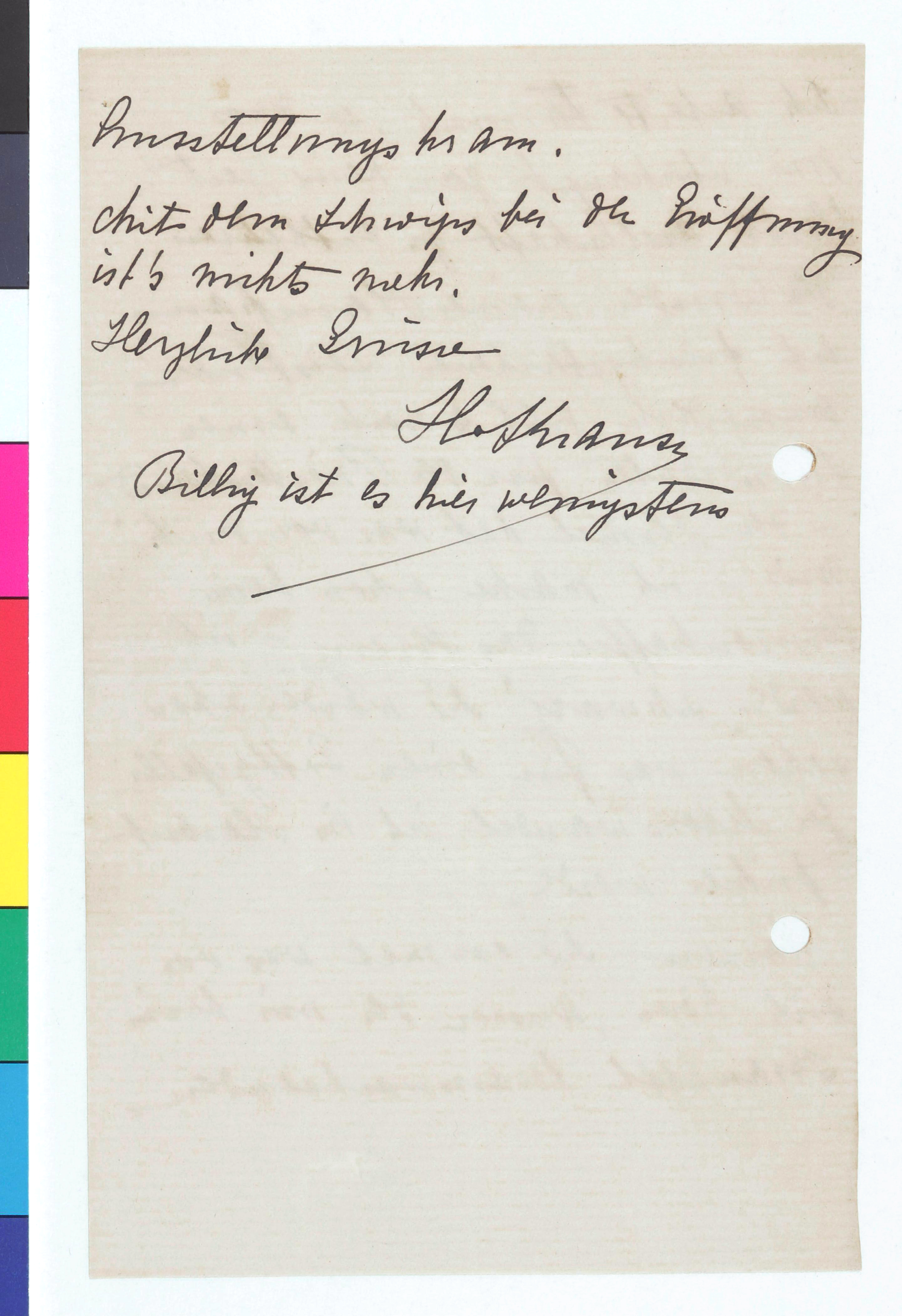 „... die werden schon sehen, was für einen gottgefälligen Lebenswandel ich im Herbst führen werde. Lassen Sie einmal was von sich hören, ausser der mir beim Krawattl herauswachsenden Ausstellungskram."