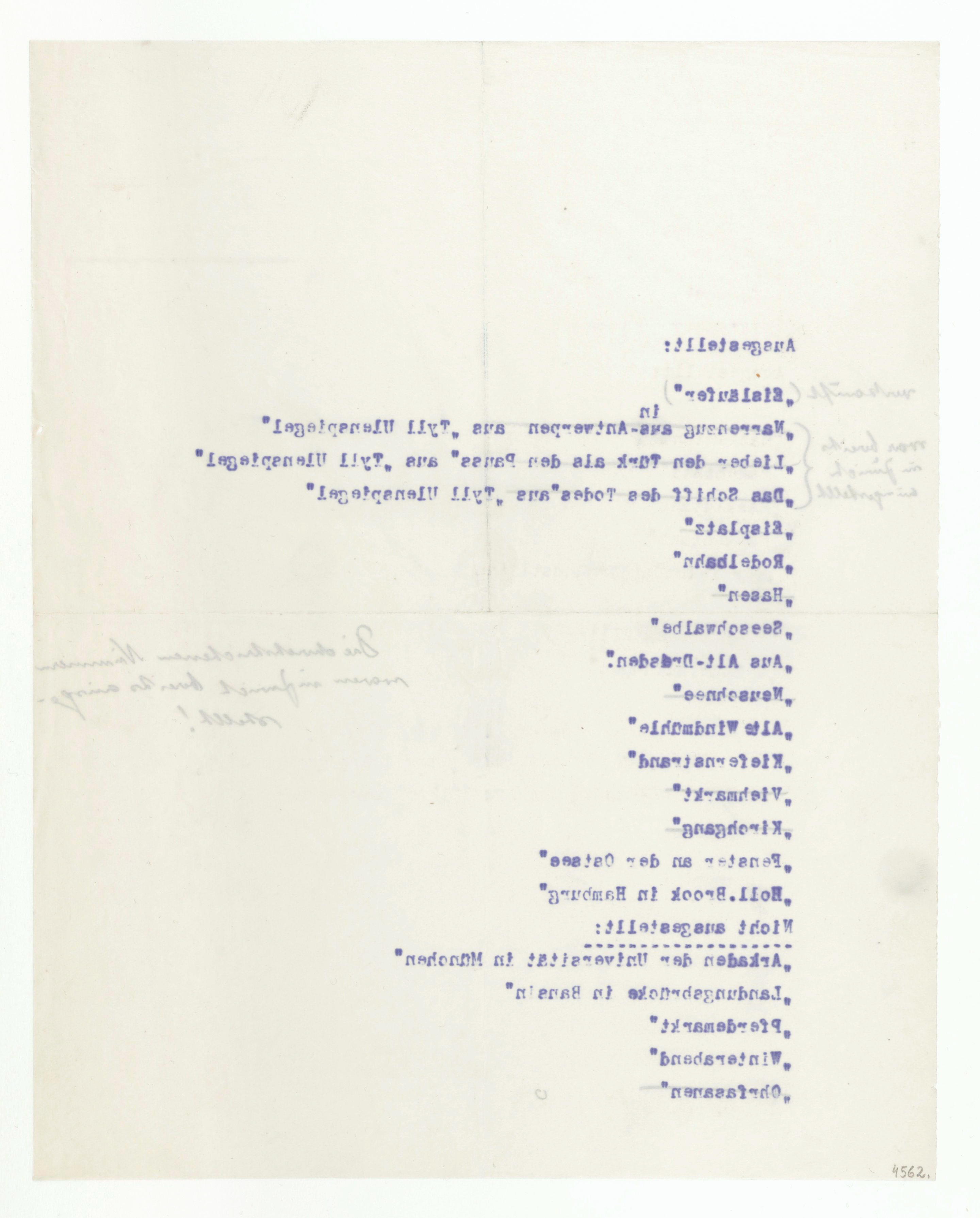 [Getippte Liste mit handschriftlichen Anmerkungen]