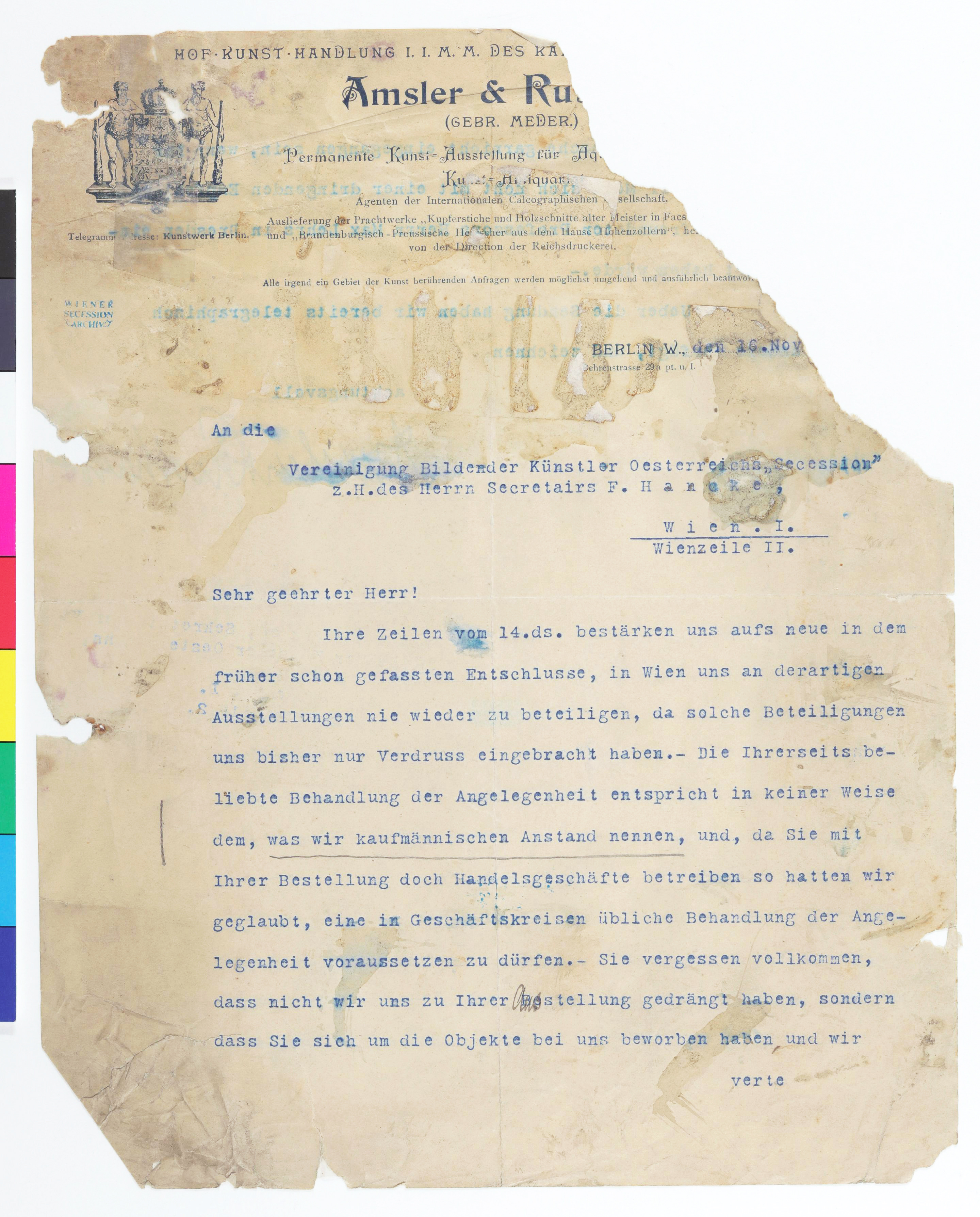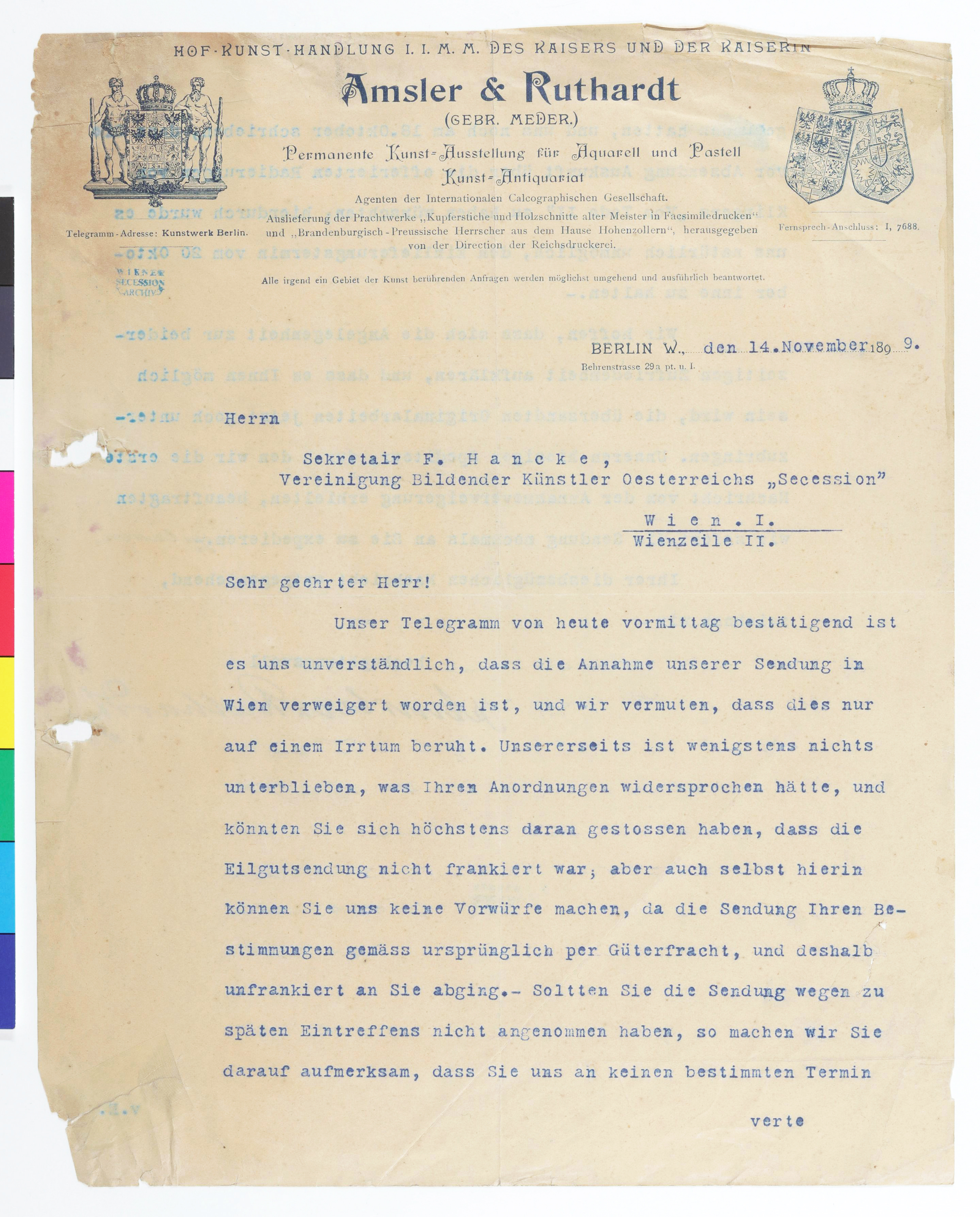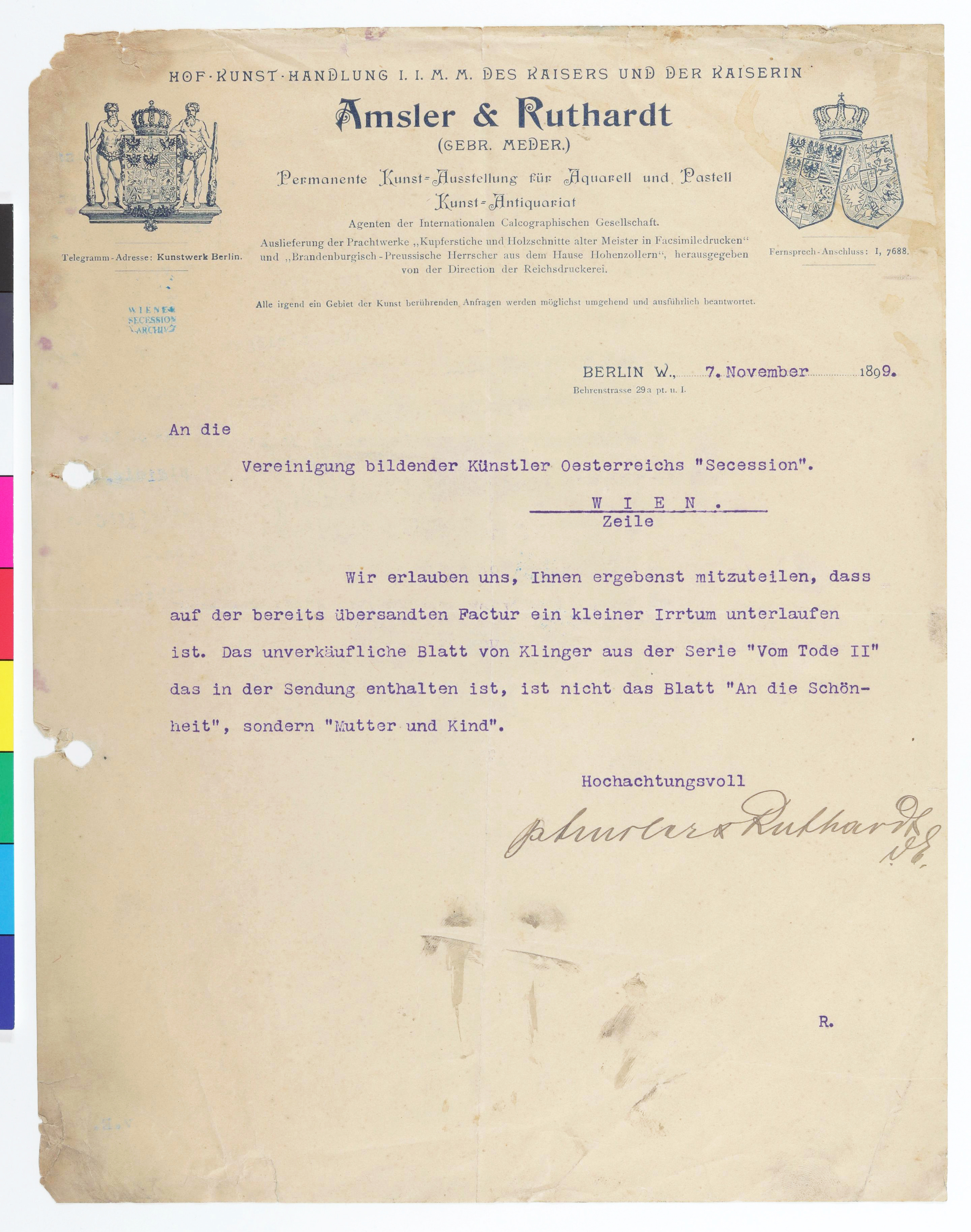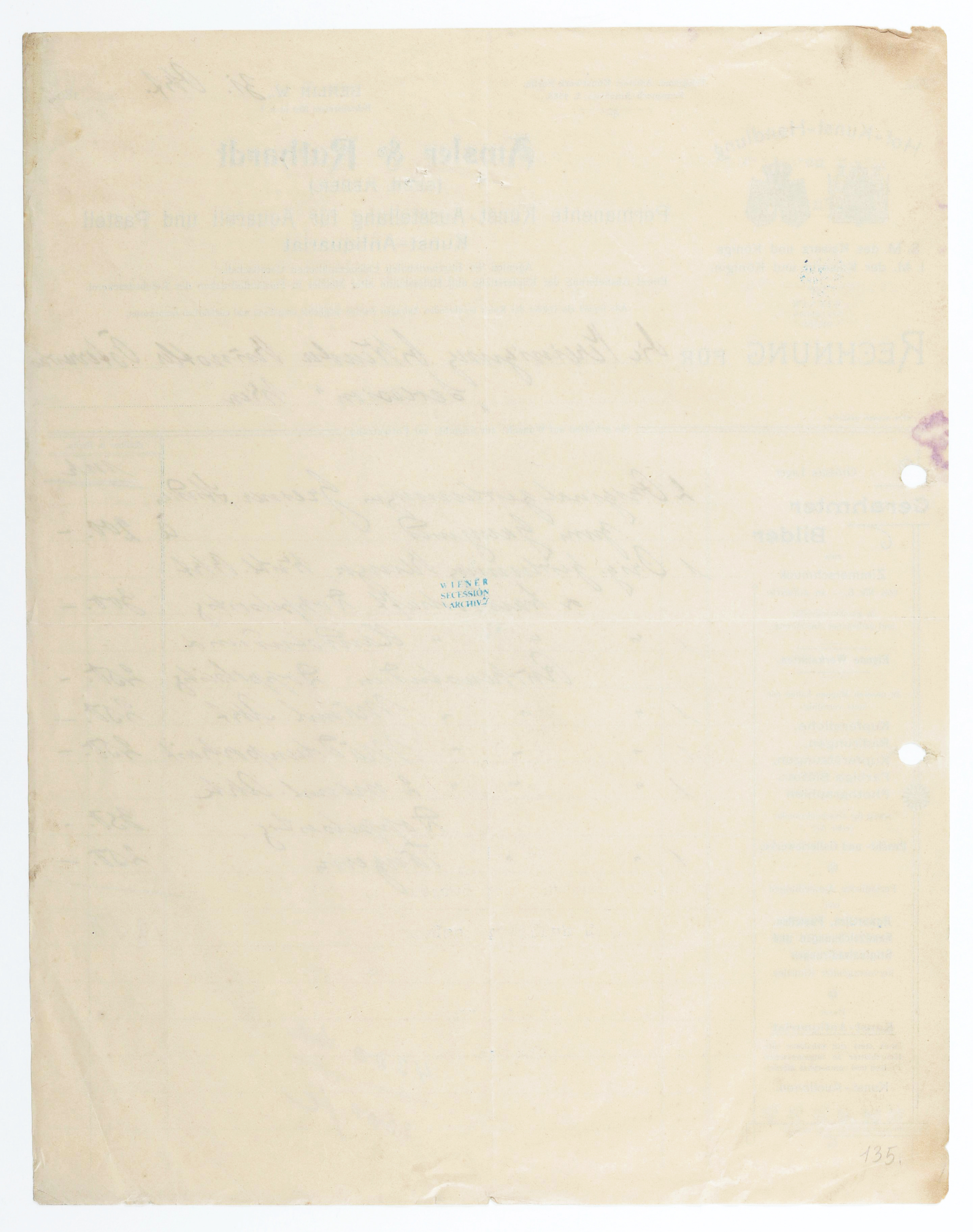 Rechnung von der Hof-Kunst-Handlung Amsler & Ruthardt an die Secession