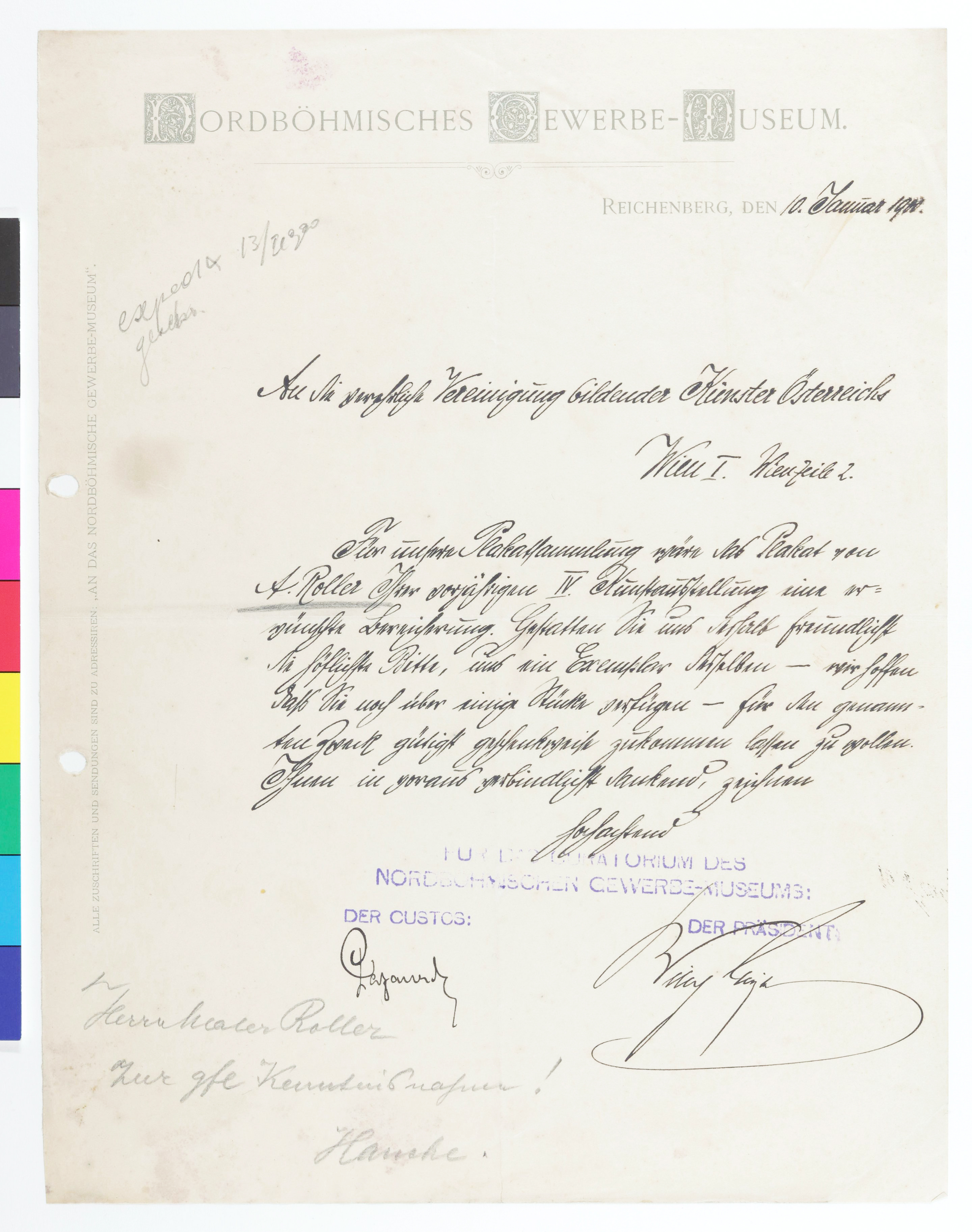 Brief vom Nordböhmischen Gewerbe-Museum an die Secession