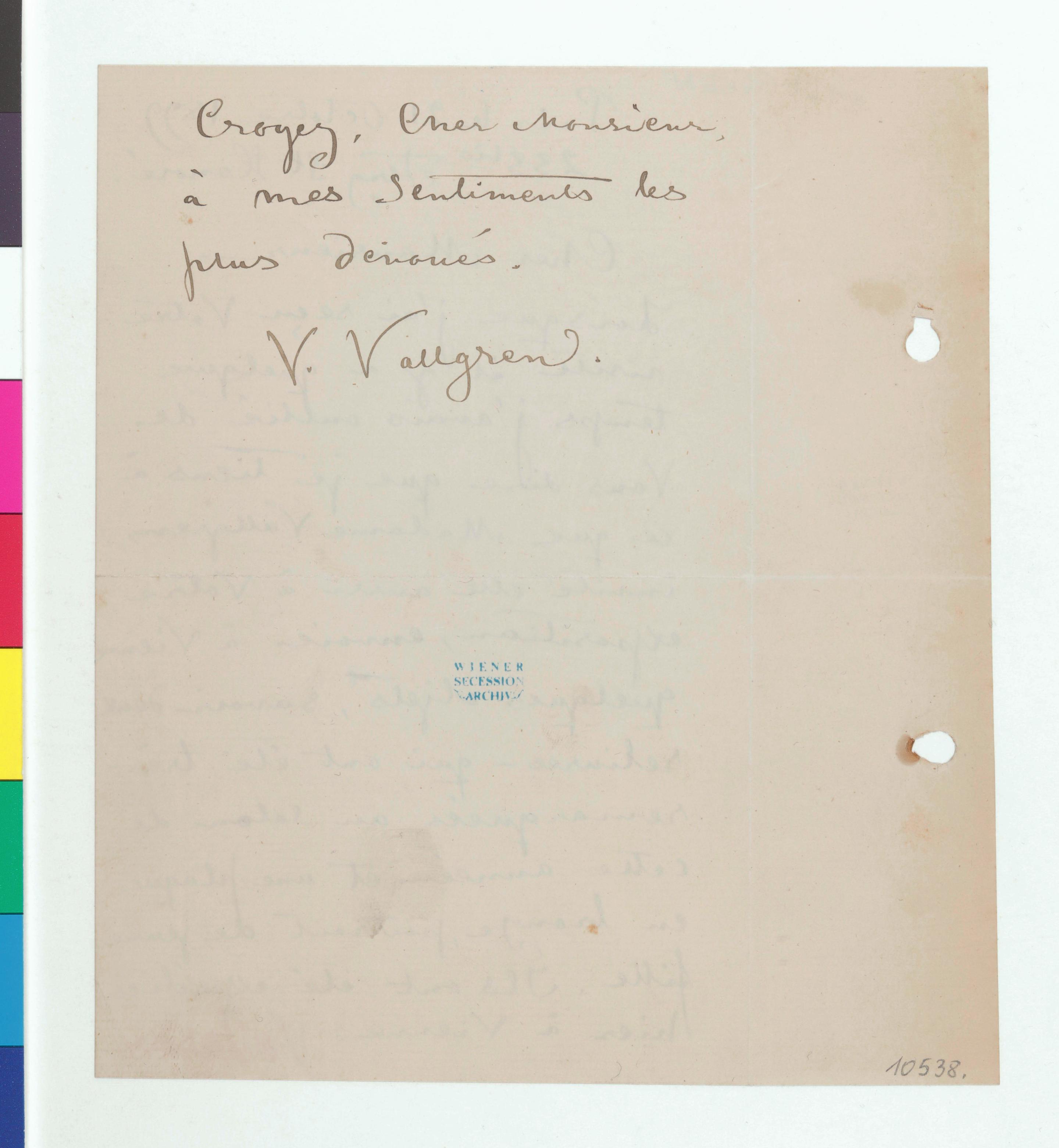 Brief von Ville Vallgren an die Secession