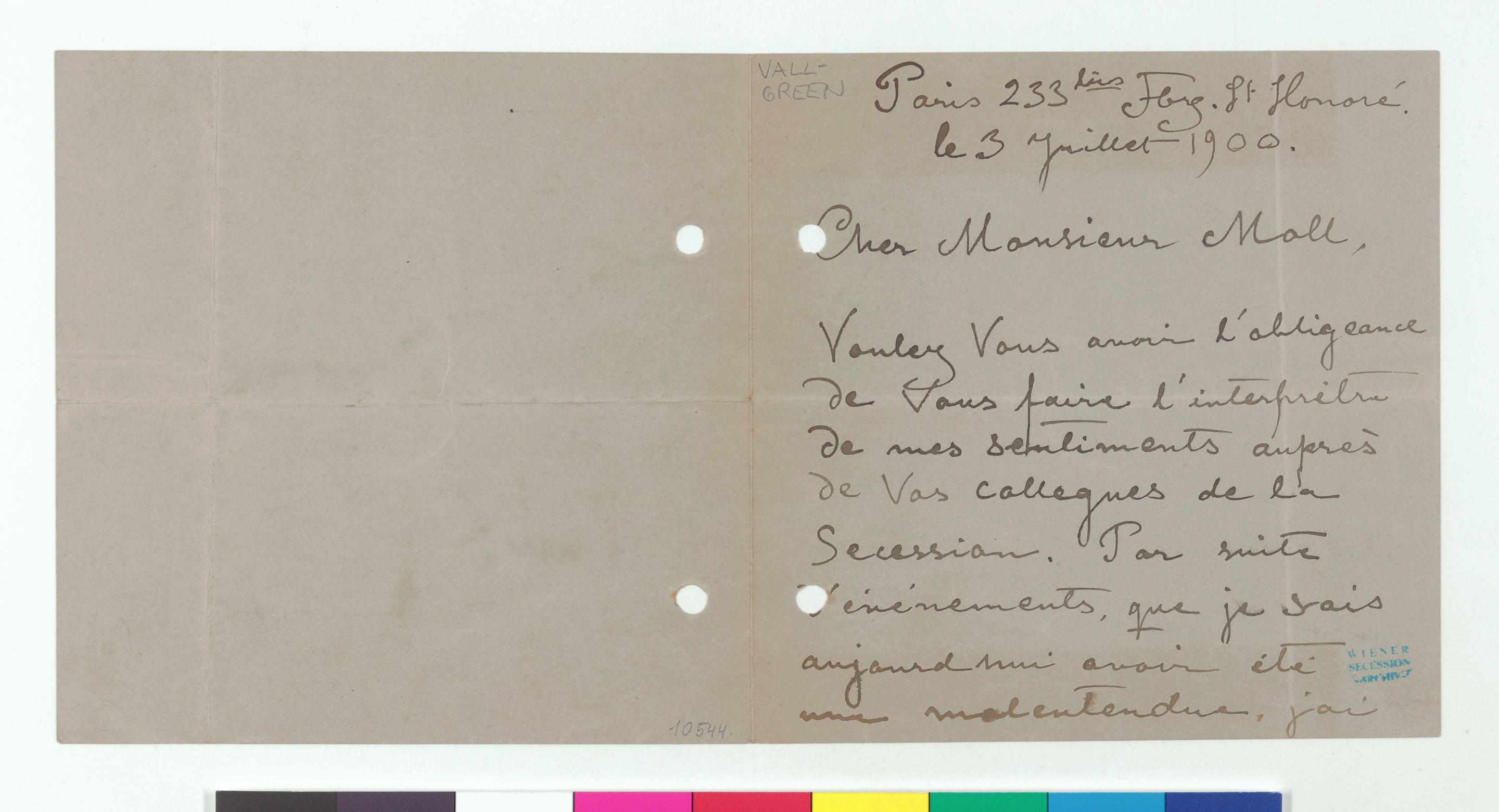Cher Monsieur Moll, [Carl Moll]