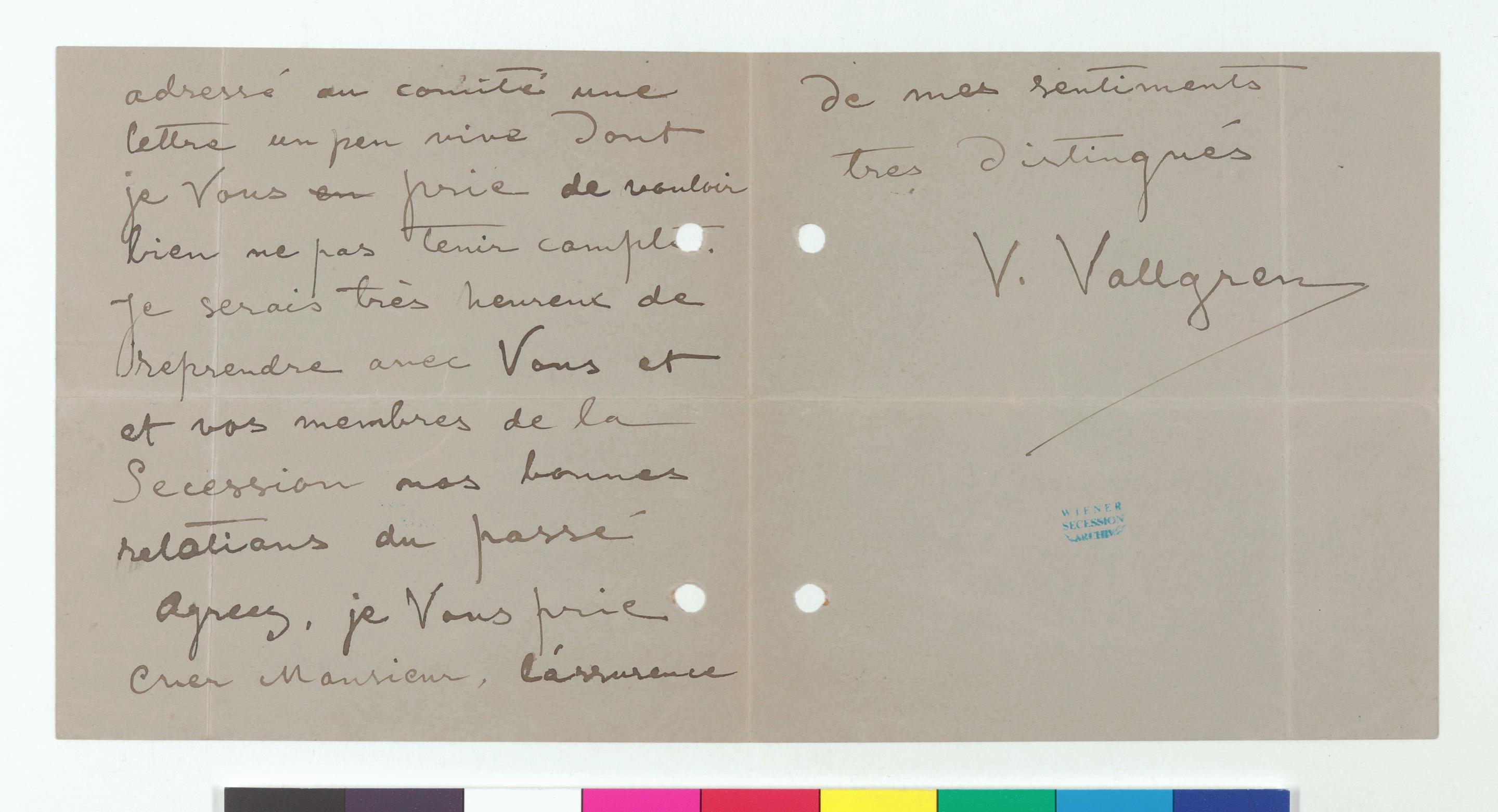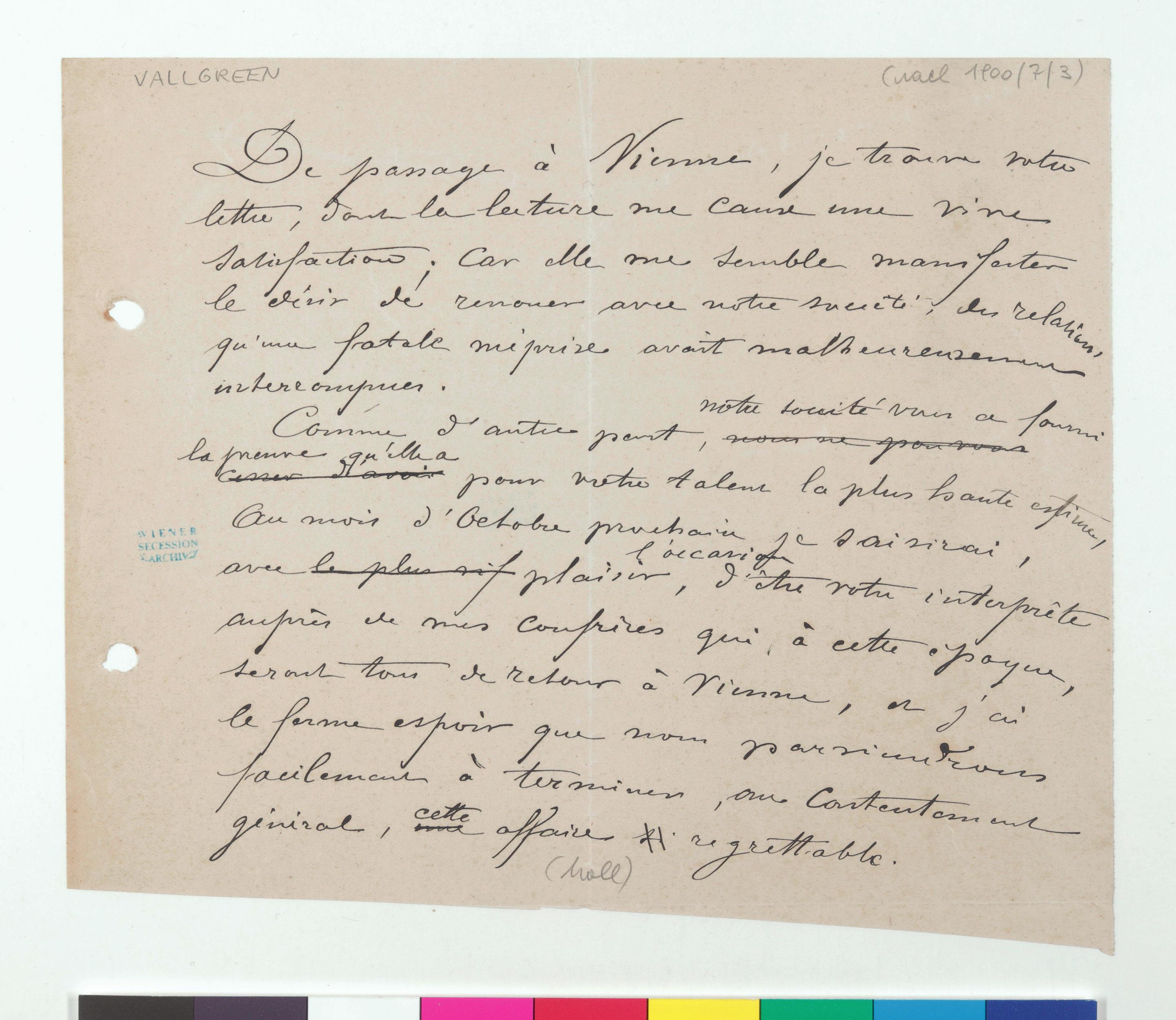 Brief von Ville Vallgren an Carl Moll