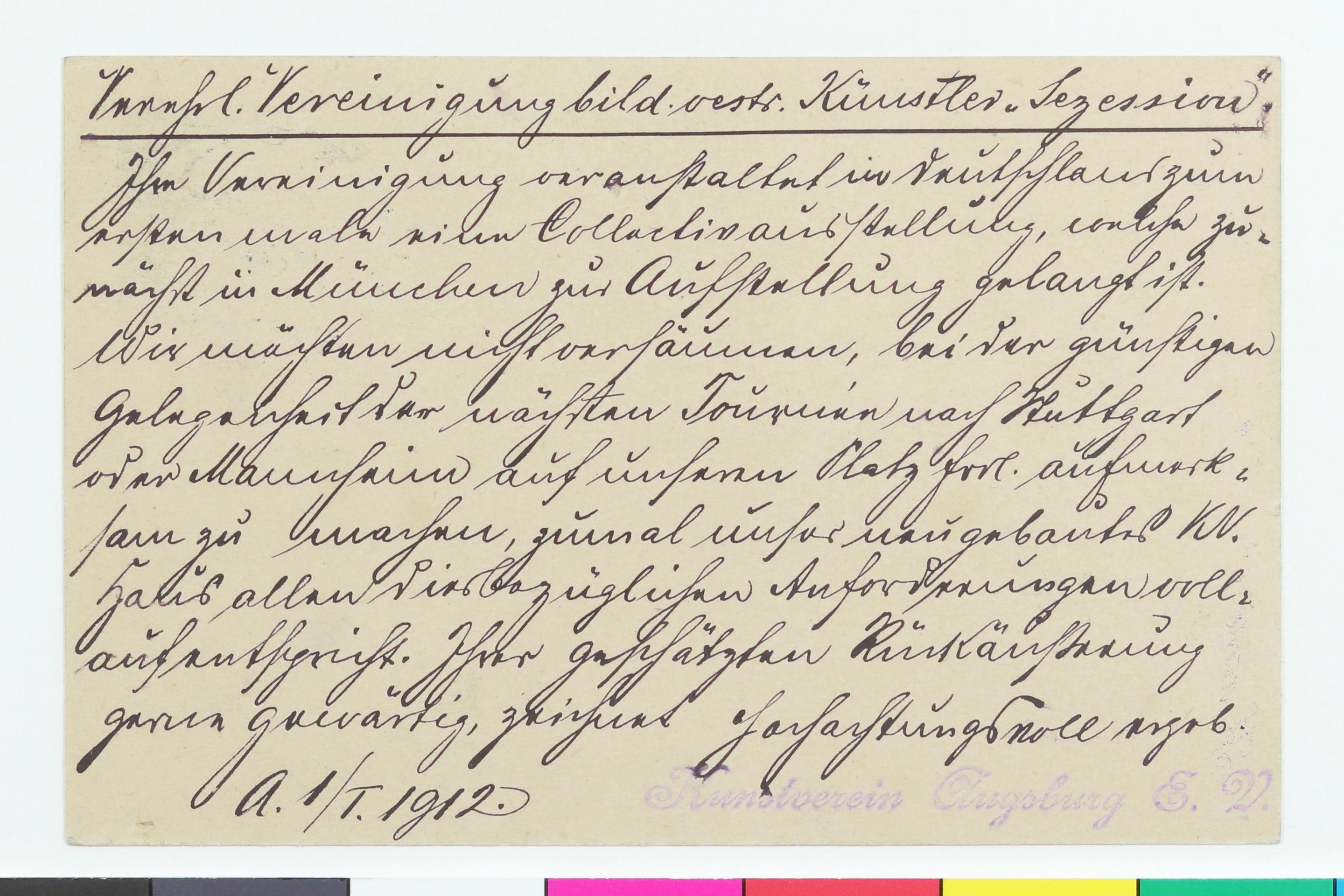 Postkarte vom Kunstverein Augsburg an die Secession
