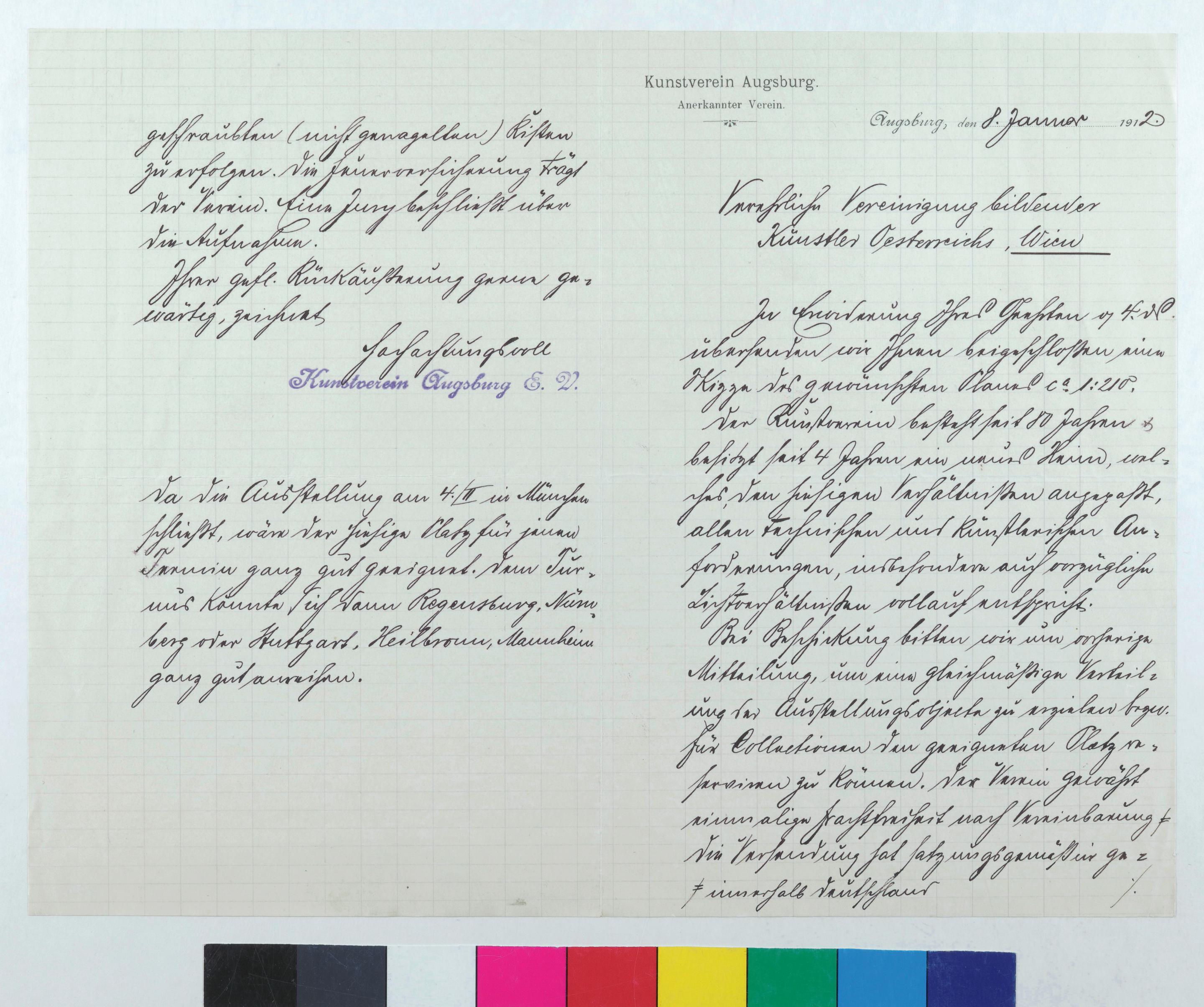 Ansichtskarte vom Kunstverein Augsburg an die Secession