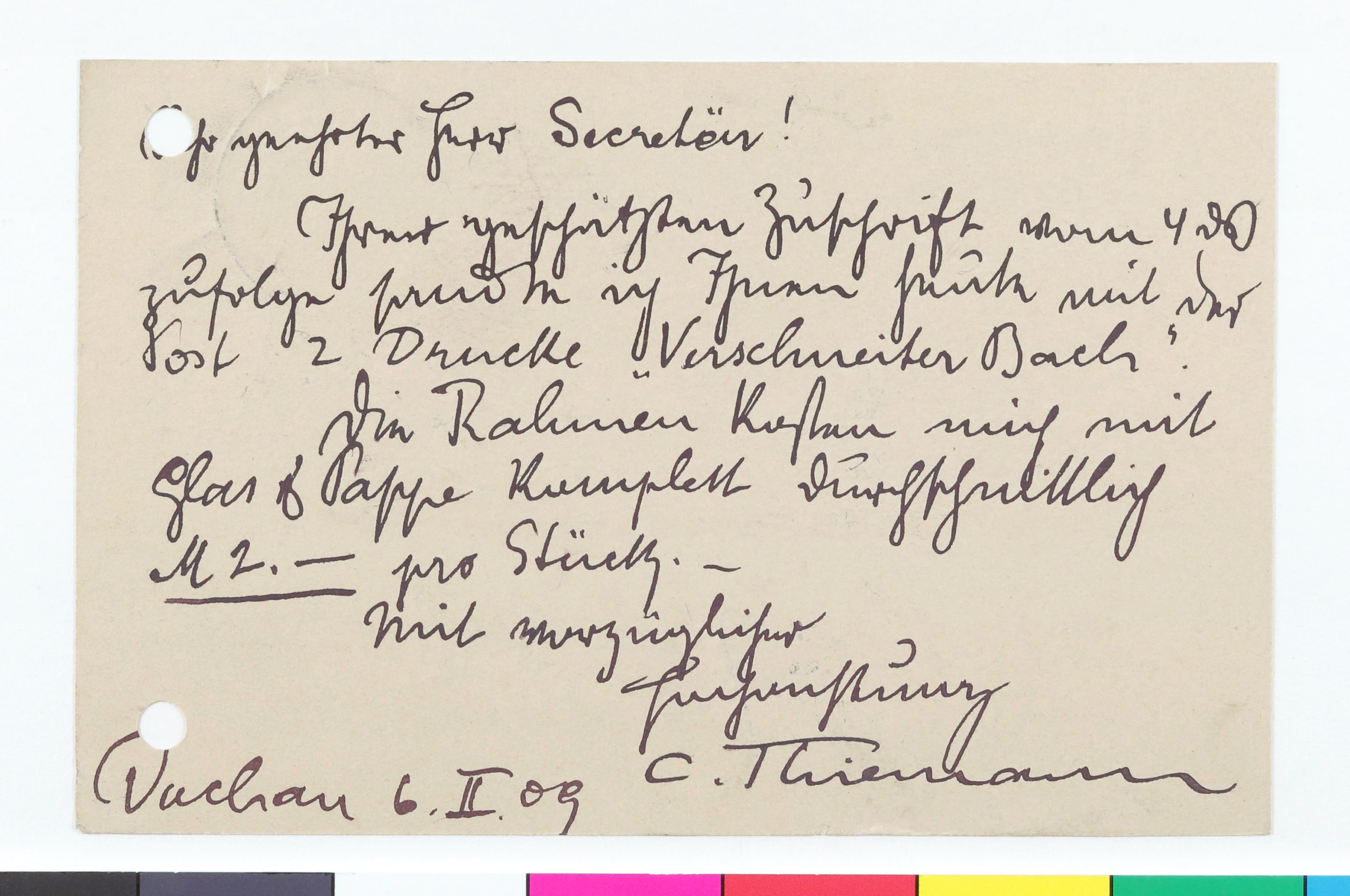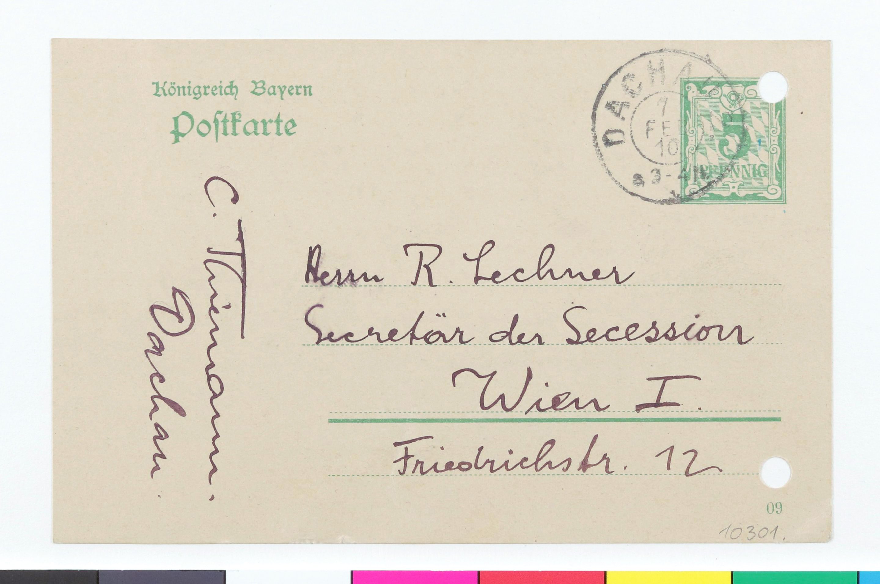 Postkarte von Carl Theodor Thiemann an Rudolf Lechner