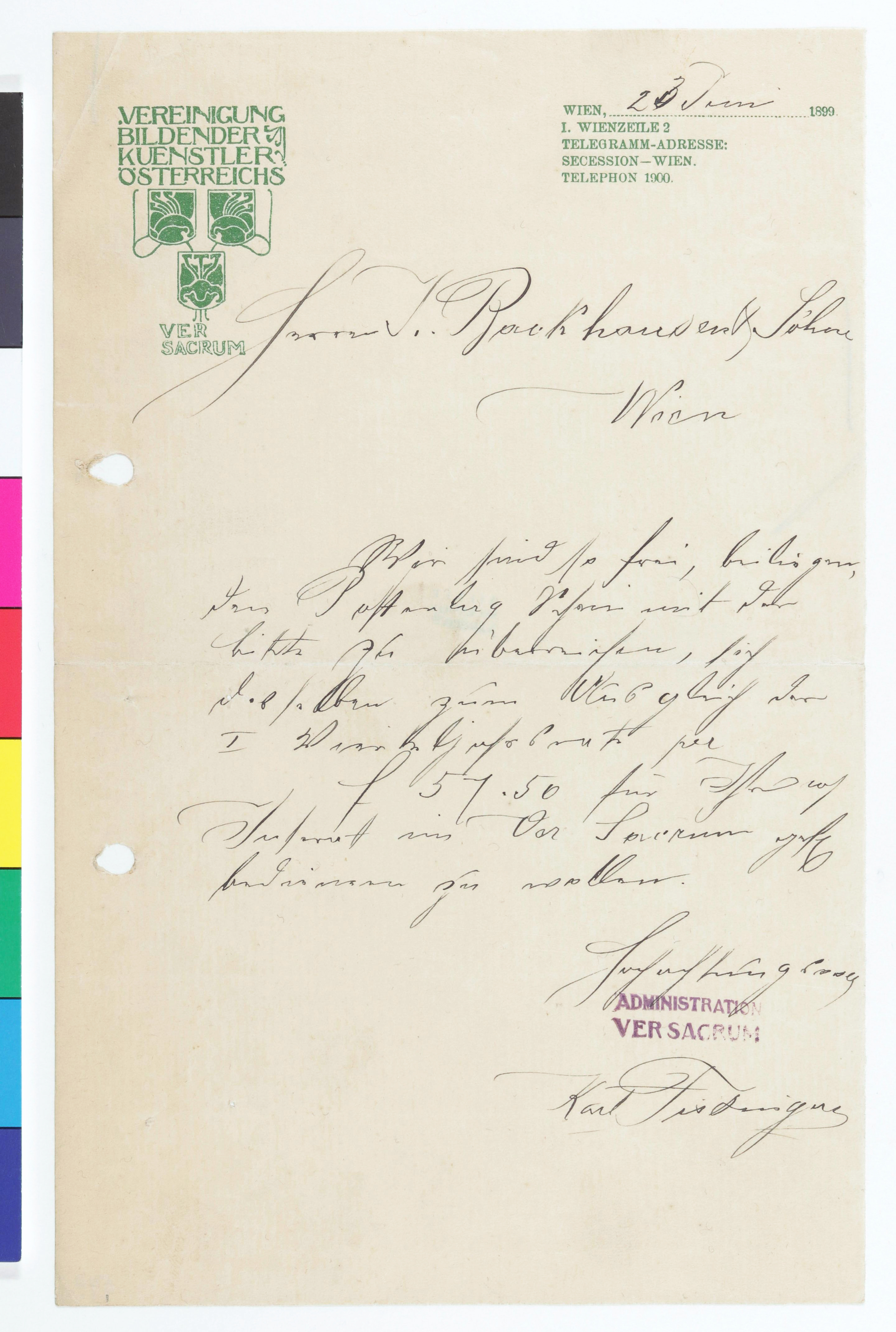 Brief von der Redaktion Ver Sacrum an die Firma Backhausen & Söhne