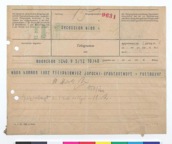 Telegramm von Hermann Grom-Rottmayer an die Secession