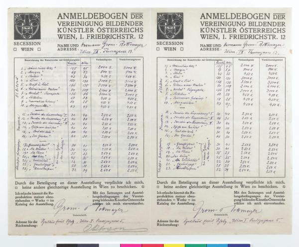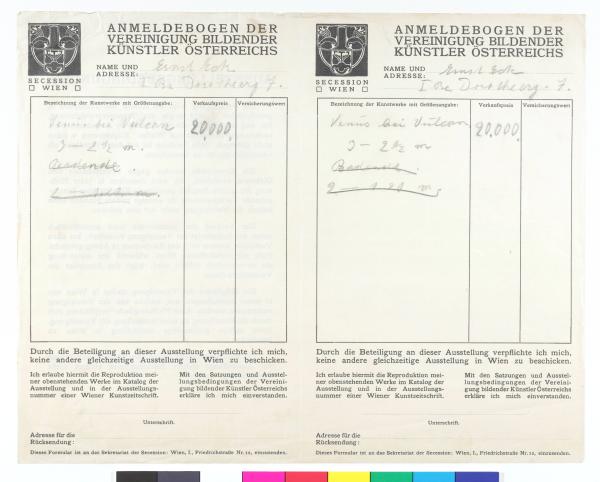 Anmeldebogen für die Winterausstellung in München, 1911