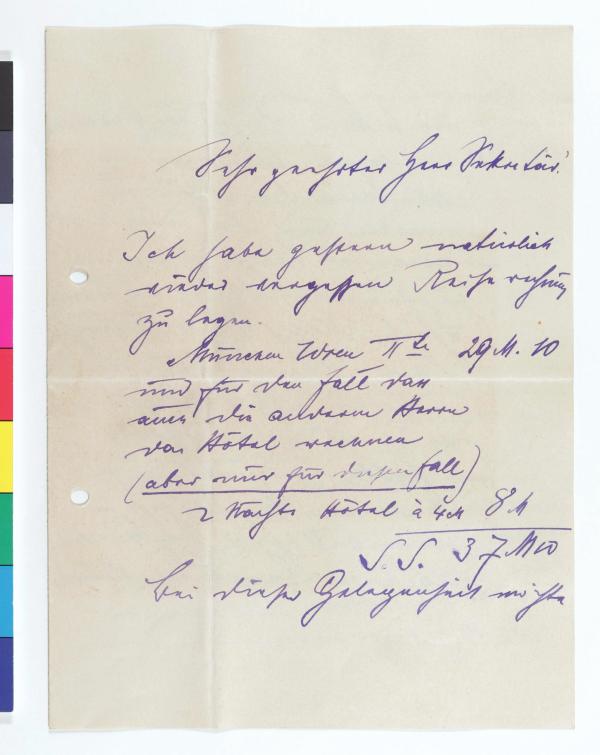 Bitte um Übermittlung einer Liste der benötigten Leihgaben, 1911