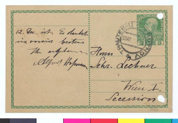 Postkarte von Alfred Hofmann an Rudolf Lechner