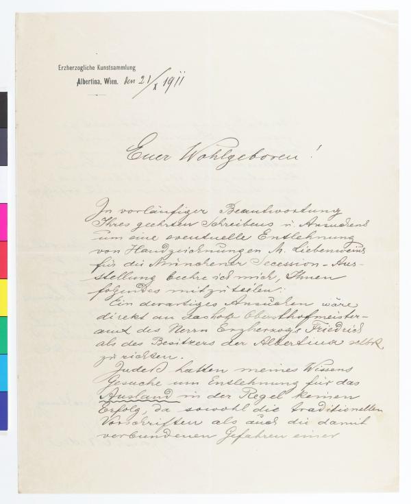 Brief von der Erzherzoglichen Kunstsammlung Albertina an die Secession