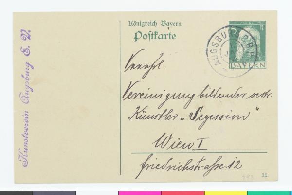 Postkarte vom Kunstverein Augsburg an die Secession