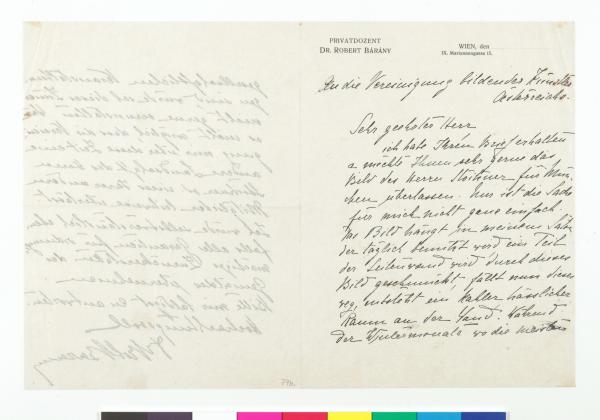 Brief von Dr. Robert Barany an die Secession