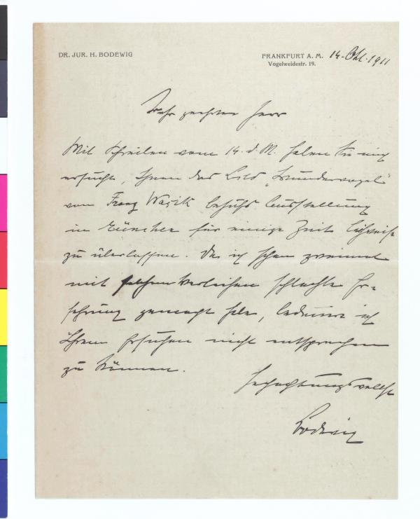 Brief von Dr. Heinrich Bodewig an die Secession