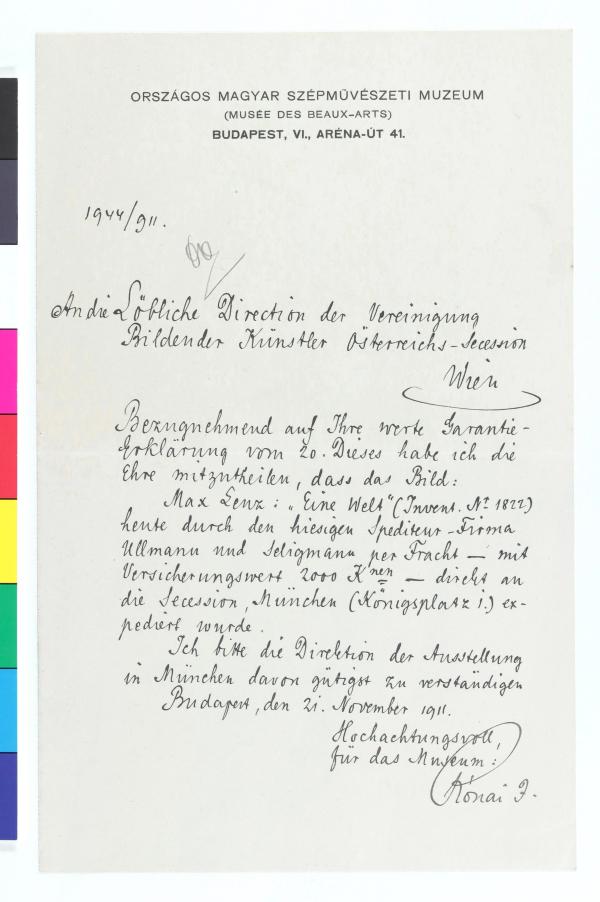 Brief vom Országos Magyar Szépművészeti Múzeum Budapest an die Secession