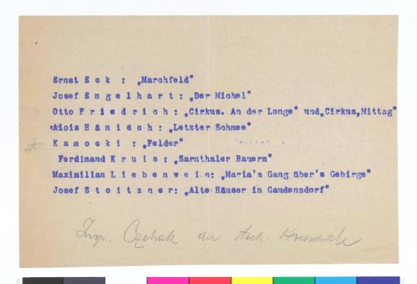 Werkliste, oA.