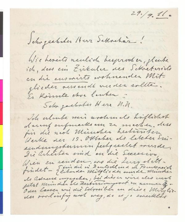 Brief von Hermann Grom-Rottmayer an die Secession