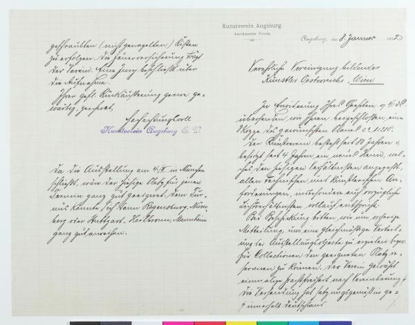 Brief vom Kunstverein Augsburg an die Secession