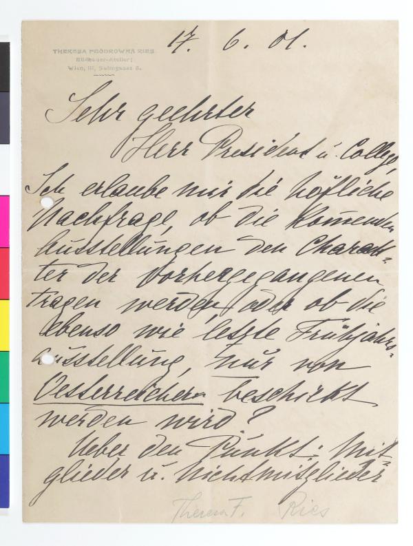 Brief von Teresa Feodorowna Ries an Alfred Roller