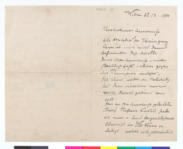 Brief von Carl Moll an die Secession