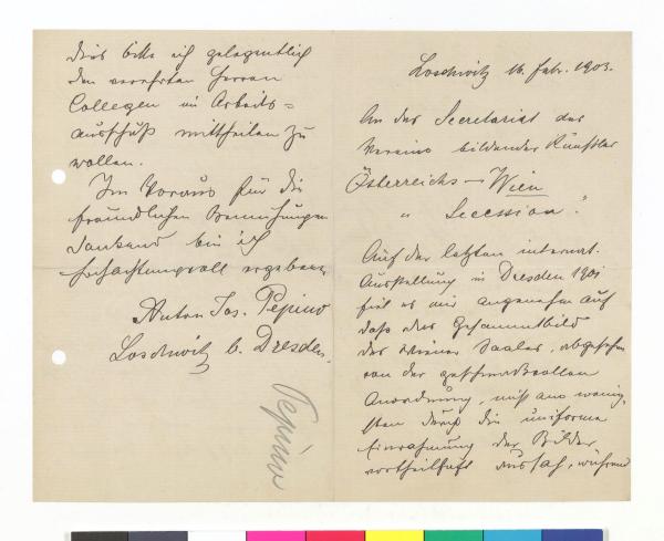 Brief von Heinrich Knirr an die Secession