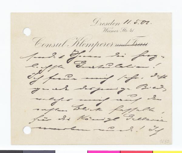 Karten-Brief von Consul Klemperer an die Secession