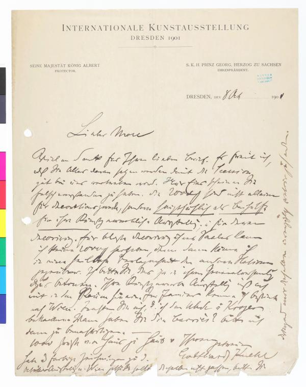 Erkundigung nach dem Profil der auf der Dresdner Ausstellung verwendeten Rahmen, 1903
